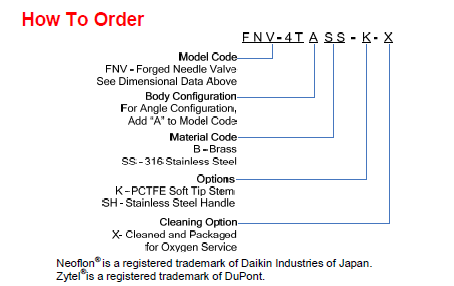 Series FNV Needle Valves feature a forged body, integral bonnet  design with PTFE and metallic wafer stem packing. This provides  leak-tite service from vacuum to the maximum operating pressure.  Series FNV are available in Straight and Angle configurations, with NPT and Dual Ferrule Tube connections. The industry  standard panel mounting allows the FNV to be a cost effective  solution to many applications. Standard metal to metal stem and  optional Soft Tip stem provide accurate metering over a wide  range of pressures. The Series FNV can be ordered cleaned for  Oxygen Service.